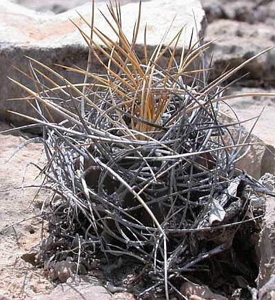 capricorne var. aureum. Die hier vorkommenden Exemplare sind sehr variabel in ihrer Bedornung, so kann man Pflanzen mit goldgelber sowie mit grauer bzw. schwarzer Bedornung zusammen finden