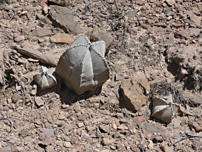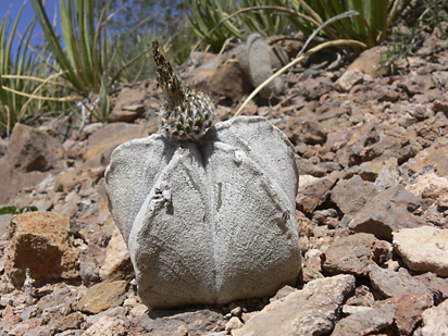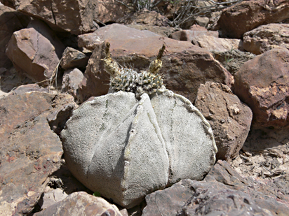 Astrophytum coahuilense ohne Sonnensschutz im Habitat am Steilhang