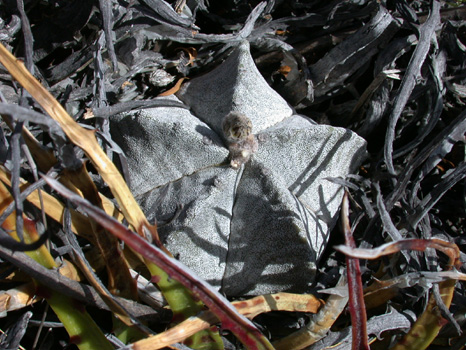 Die einzelnen Exemplare wachsen direkt zwischen den Hechtien oder ohne Sonnenschutz direkt auf den Kalkfelsen