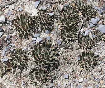 Als Begleitpflanzen ist Ariocarpus trigonus in Massenbeständen anzutreffen