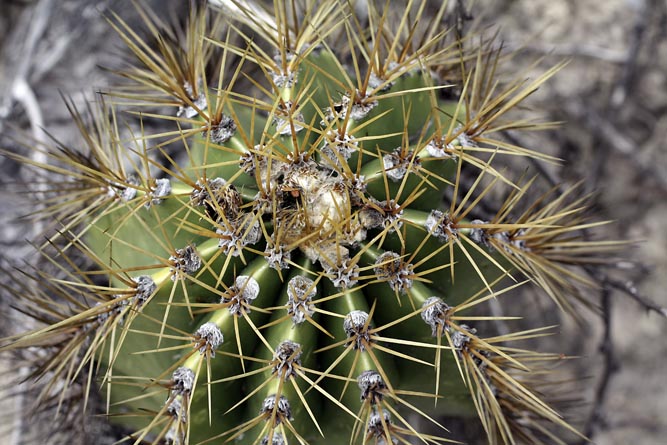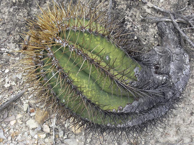 Astrophytum ornatum am Rio Extoraz. Dieses Exemplar hat die Rippen von normal acht auf elf Rippen erhöht.