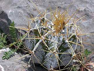 Steil abfallende Kalkfelsformationen bilden den Wuchsort dieser Astrophytum ornatum Population im Gebiet von Vista Hermosa