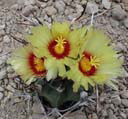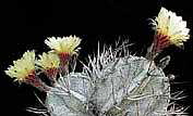 genus is more or less covered with the typical white woolly flecks. The areoles are in vertical rows along each rib and the spines look like the horn of a Capricorn.