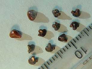 comparison between two seeds of Astrophytum asterias (left) and the different looking seeds of Astrophytum caput-medusae
