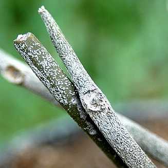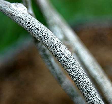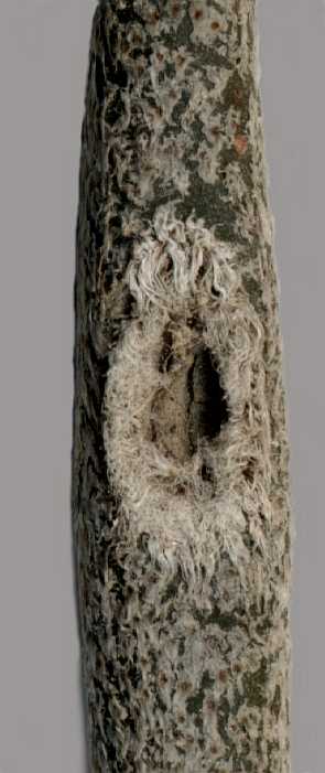 Die Epidermis zeigt die für die Gattung Astrophytum typischen Wollflocken hier mit abgeblühten Areolen