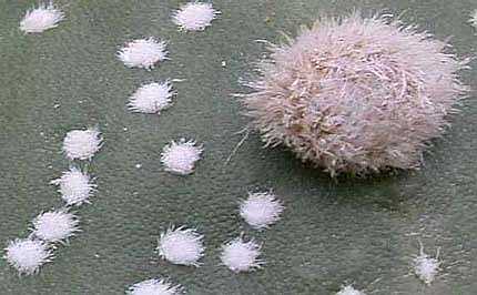 Areole mit für Astrophytum asterias typischen Flockenreihen