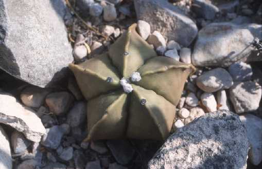 Ohne Sonnenschutz zwischen losem Kalkschotter wachsende Jungpflanze