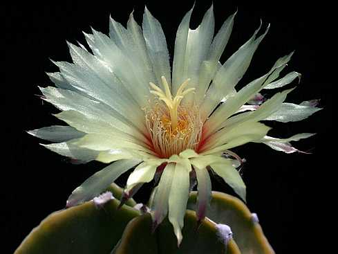 einen roten Schlund und erinnert sehr stark an Astrophytum capricorne